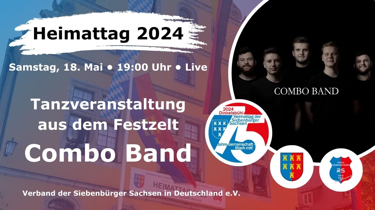 Die „Combo Band“ freut sich riesig, dieses Jahr wieder beim Heimattag der Siebenbürger Sachsen in Dinkelsbühl dabei zu sein. Gemeinsam mit euch wollen wir am Samstagabend das Festzelt auf dem „Schießwasen“ zum Beben bringen! Es spielen: Wolfgang Krafft (E-Bass, Posaune), Jan Elst (Schlagzeug, Gitarre), Marco Dick (Gitarre, Akkordeon, Steirische), Tim Schmidt (Gitarre, Trompete) und Samuel Krafft (Keyboard, Bariton). Lasst uns zusammen feiern!