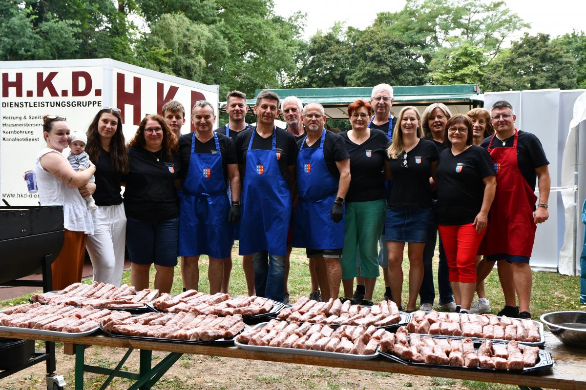 „DANKE, DANKE, DANKE!“, schrieb die Vorsitzende Ingwelde Juchum an die Helfer nach dem gelungenen Open-Air Fest. „Jetzt weiß ich wieder, warum ich mich für den Verband und unsere Siebenbürger Sachsen einsetze und warum ehrenamtliche Arbeit auch Spaß macht. Es hat alles gepasst: Musik, Singen, Organisation, Wetter. Alles zusammen hat eine perfekte Stimmung ergeben. Die Gäste waren restlos begeistert. Alle Helfer haben Hand in Hand gearbeitet. Ein tolles Team. Wir haben viele Stunden in die Veranstaltung investiert. Ich hoffe, dass ihr dennoch Spaß dabei hattet.“ Mit diesen Worten hatte sie alles auf den Punkt gebracht, was man als Fazit nach der Organisation eines wunderbaren Festes feststellen kann. Trotzdem möchte ich etwas ausführlicher darüber erzählen.Nur mit einer guten Organisation, der eine gute Planung bis ins Detail vorausgeht, kann ein Fest erfolgreich sein. Die Helfer aus dem Vorstand trafen sich schon um die Mittagszeit an der Grillhütte, um alles vorzubereiten. Sie stellten Biertische, Bänke und Schatten spendende Zelte auf, verlegten Stromkabel und befestigten Lampen. Für das leibliche Wohl wurden Schmalzbrote geschmiert und der Grill zum Braten von Würstchen vorbereitet. Der Kühlraum wurde mit einer großen Menge an Getränken gefüllt. Alles stand für die Gäste bereit. Um 18.00 Uhr legte das Schlager Taxi mit fetziger Musik los.