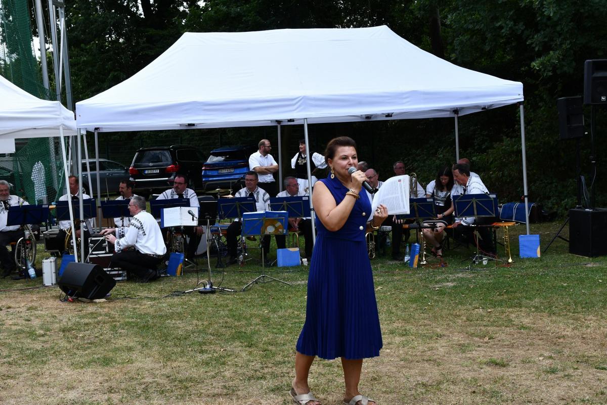 Das Fest eröffnete die Blaskapelle in routiniert flotter Manier wonach die Vorsitzende Ingwelde Juchum die anwesenden Ehrengäste und Gäste, die Mitglieder der Kulturgruppen und nicht zuletzt die vielen Helfer herzlich begrüßte. Der Einladung zum Waldfest folgten unter anderen: der erste Stadtrat der Stadt Neu-Isenburg - Stefan Schmitt und Herr Dipl. Ing. Hans Harald Dootz. Der hessische BDV war vertreten durch die Geschäftsführerin Frau Joanta Lemm und die Kulturreferentin Frau Agnes Brügging-Lazar.