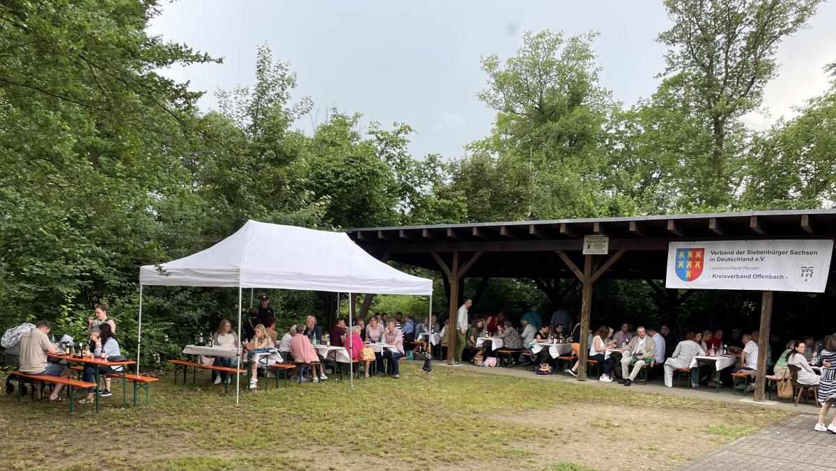 Am Sonntag, den 14. Juli 2024, erlebte Weiskirchen ein besonderes Ereignis: Der Heimattag des Kreisverbands Offenbach der Siebenbürger Sachsen in Deutschland e.V. fand bei strahlendem Sonnenschein statt. Schon um 11 Uhr strömten die ersten Gäste zum Veranstaltungsort, angelockt durch persönliche Einladungen, das vielfältige Angebot und das kulturell reichhaltige Programm. Der stellvertretende Kreisverbandsvorsitzende Klaus Herzog begrüßte erfreut mehr als 150 Gäste, eine Zahl, die die Erwartungen der Organisatoren weit übertraf.