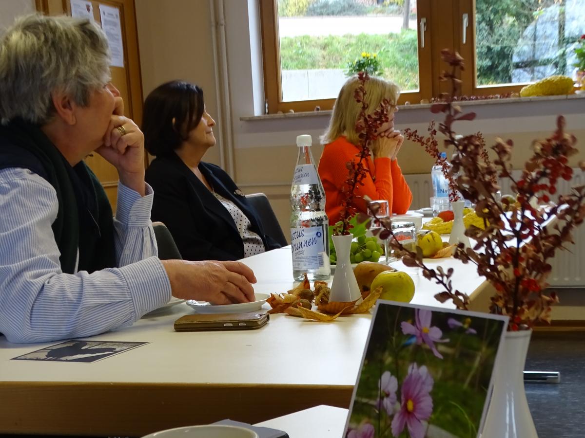 Aus verschiedenen Gründen konnten an der Tagung am 30.Oktober leider nur 15 Frauen teilnehmen. Die Frauenreferentin Karin Scheiner hatte, wie immer bei solchen Gelegenheiten, den Raum des Dorfgemeinschaftshauses in Schlierbach wunderschön herbstlich geschmückt. Man fühlte sich sofort willkommen und war gespannt auf den Tag.