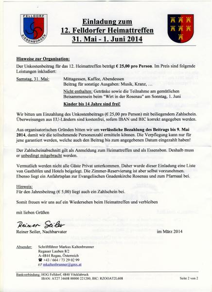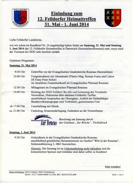 Einladung zum 12.Felldorfer Heimattreffen 31.Mai -1.Juni 2014