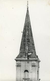 Als am 27. Mai, kurz nach Pfingsten mit den Arbeiten begonnen wurde, die bis zum 18. Oktober andauerten, war die Gemeinde darauf vorbereitet. Auch nicht vorhersehbare Schwierigkeiten und Hindernisse konnten den Arbeitsrhythmus nicht hindern. Beim Transport der Dachziegeln von der Papierfabrik bis zur Kirche waren die Nachbarschaften im Einsatz. Das Förderband zum Dachboden von Kirche und Turm bestand aus unzähligen Menschenhänden. Die Handlangerarbeiten wurden von den Nachbarschaften geleistet, während Berufsgruppen wie Schreiner, Maler, Schlosser u. a. ihre entsprechenden Aufgaben erhielten.