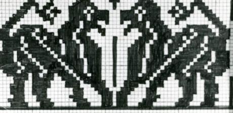Das Bild des Löwen wurde in Siebenbürgen nicht nur gewebt, sondern auch gestickt. In Neppendorf hat Katharina Rether das heraldische Ornament des Löwen mit der Krone auf dem Kopf, aufrecht gegen einen Doppeladler schreitend, auf einer Bettdecke als Randverzierung festgehalten. Was sich die Bäuerin bei der Auswahl dieser Ornamente gedacht und erhofft hat lässt sich heute nur noch vermuten.