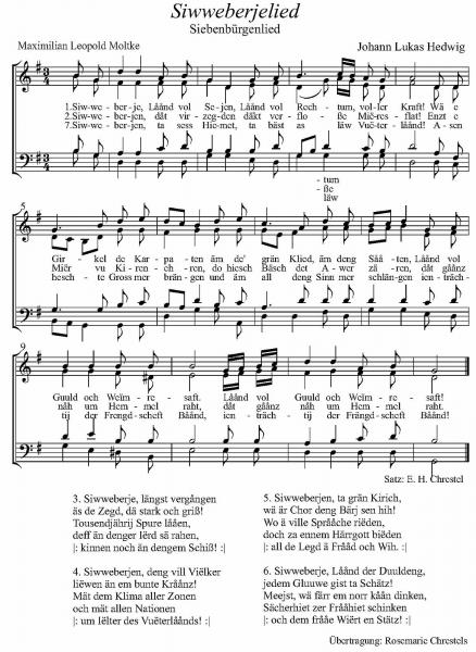 Weniger bekannt ist der Schöpfer des Liedtextes, Maximilian Leopold Moltke (1819-1894). 1819 in Küstrin (heute Polen) geboren, verlor er schon im Kindesalter seinen Vater und musste so seinem Wunsch, Theologie zu studieren, entsagen. Er wurde Buchhändler und kam über Budapest 1841 nach Kronstadt, wo er in die Nemethische Buchhandlung eintrat und deren Geschäftsführer wurde. Der literarisch begabte Moltke wirkte als Redakteur des Siebenbürger Wochenblattes, das in Kronstädter Zeitung umbenannt wurde, als er deren Schriftleitung übernahm. Dank seiner Gabe, idealen Gedanken und Gefühlen schönen Ausdruck zu verleihen, entstanden das „Siebenbürger Volkslied“ (27. Mai 1846), das Hedwig als Siebenbürgenlied vertonte, und das „Volksgebet“ (es beginnt mit dem Vers „Schütze, Gott, dein Volk der Sachsen“), für das er auch die Melodie schuf.Moltke heiratete eine Kronstädterin und wäre vermutlich in Kronstadt oder überhaupt in Siebenbürgen geblieben, wenn die bürgerliche Revolution von 1848/49 nichtausgebrochen wäre. Als Idealist und gutgläubig, wie er war, schloss er sich dem ungarischen Revolutionsheer an, das in Siebenbürgen unter dem polnischen General Bem kämpfte. Er glaubte, dadurch für die Sache der Freiheit, gegen den habsburgischen Despotismus und für mehr Rechte der Siebenbürger Sachsen kämpfen zu können. Nach anfänglichen Erfolgen drang aber durch, dass die ungarischen Revolutionäre die zu erkämpfenden Rechte nur für sich in Anspruch nehmen und die mitwohnenden Volksgruppen weiter unterdrücken wollten. So war es verständlich, dass sich sowohl die Siebenbürger Sachsen als auch die Siebenbürger Rumänen auf die Seite Österreichs stellten Österreich rief zur Niederschlagung der Revolution das verbündete zaristische Russland zu Hilfe und so kamen russische Truppen nach Siebenbürgen. Moltke geriet in russische Gefangenschaft, die Russen überstellten ihn aber den Österreichern. Zweieinhalb Jahre wurde er in Triest festgehalten, wohin ihm seine Frau Luise folgte. Auf Anforderung Preußens wurde er schließlich nach Berlin entlassen, von wo er 1864 nach Leipzig übersiedelte. Nach Siebenbürgen ist Moltke zwar nicht mehr zurückgekehrt, die Verbindung zu den ihm so lieb gewordenen Siebenbürger Sachsen hat er aber bis an sein Lebensende bewahrt.