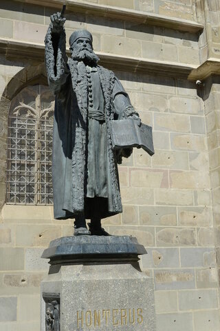 Honterus-Denkmal an der Schwarzen Kirche in Kronstadt. Foto: Thomas Șindilariu Todestag von Johannes Honterus, Kirchenreformator - vor 477 Jahren