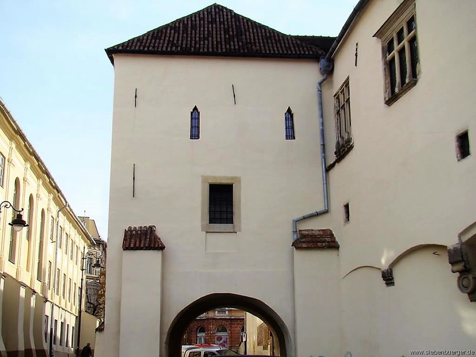 Der Wehrturm an den Mauern des Alten Rathauses wurde im 14. Jh. erbaut und ist gehörte zum dritten Befestigungsring. Er besitzt einen rechteckigen Grundriss und einen gewölbten Durchgang. Der Durchgang steht noch nachdem der Priesterturm abgerissen wurde.