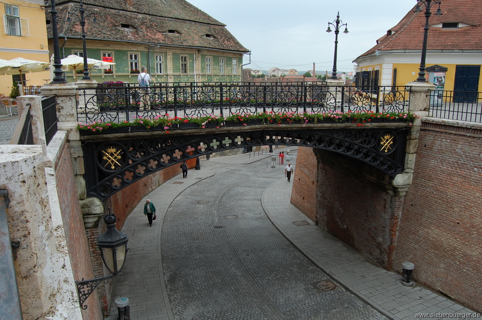 Ein gußeisernes Schmuckstück, ist die Lügenbrücke eines der bekanntesten Wahrzeichen der Stadt. Die 1859 in der Friedrichshütte in Hessen hergestellte Brücke nahm den Platz einer älteren Holzbrücke ein und ist die erste gußeiserne Brücke auf dem Gebiet des heutigen Rumänien. Weil sie auch die erste Brücke war, die nicht auf Pfeilern stand, wurde sie „Liegebrücke" genannt. Von „liegen" zu „Lügen" war es nicht weit; so erhielt sie bald die Bezeichnung „Lügenbrücke", und es begannen sich mancherlei Legenden um diesen Namen zu ranken.