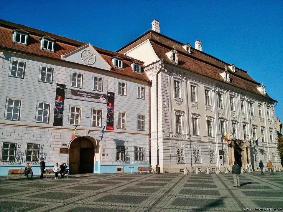 Das Blaue Stadthaus beherbergt heute Büros und Ateliers des benachbarten Brukenthal-Museums: Kreisamt für Nationales Kulturgut, das Regionale Atelier für Restaurierungen, Verwaltung, Buchhaltung und Finanzabteilung.