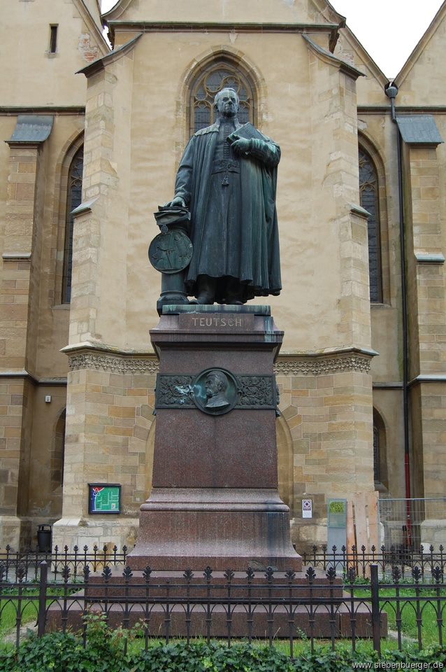 Zwischen der evangelischen Stadtpfarrkirche und dem Brukenthal-Gymnasium steht das Standbild des Bischofs Georg Daniel Teutsch, ein Werk des Stuttgarter Bildhauers Adolf von Donndorf aus dem Jahr 1899. Die 3,5 m hohe Bronzestatue steht auf einem gleich hohen Sockel aus Granit, auf dem in vier Bronzemedaillons vier Mitarbeiter des Bischofs zu sehen sind: Bischof Paul Binder, Komes Konrad Schmidt, sein Berater J.C. Schuller und sein Sekretär Franz Gebbel.