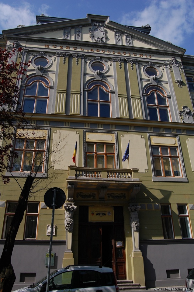 Der 1905 eingeweihte Palast des ASTRA-Vereins, der einen Konferenzsaal, eine Bibliothek, den ersten rumänischen Theatersaal und das Museum für rumänische Volkskunde und Malerei beherbergte.
