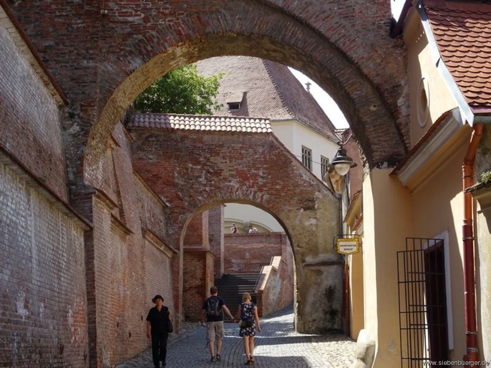 Am Fuße der Aufgänge, am Anfang der Saggasse/Turnului, stehen beidseitig alte Häuser aus dem 17.Jh.