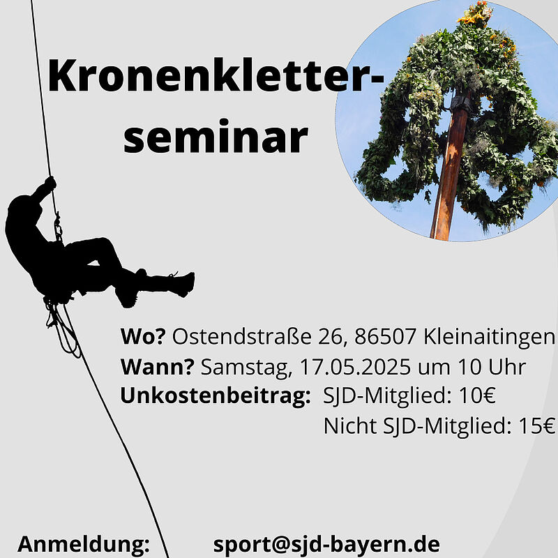 Am Samstag, dem 17. Mai, um 10.00 Uhr findet das Kronenkletterseminar der Siebenbürgisch-Sächsischen Jugend in Deutschland (kurz: SJD Bayern) in der Ostendstraße 26 in 86507 Kleinaitingen statt.