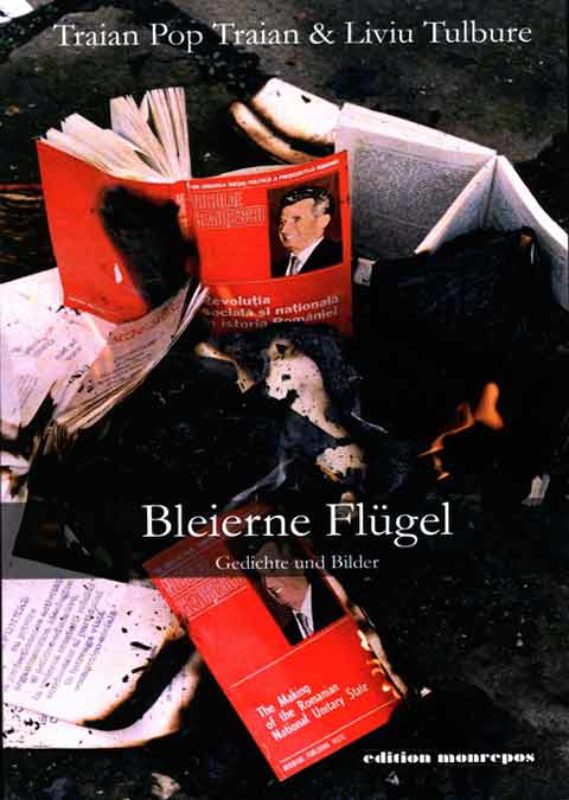 Angekokelte Ceaușescu-Wälzer zieren das Cover des neuen Gedichtbands von Traian Pop Traian, „Bleierne Flügel. Gedichte und Bilder“, den er zusammen mit dem Fotografen Liviu Tulbure gestaltet hat und der in seinem Verlag erschienen ist. Darin sind neben Gedichten, die meist Ende der 1990er Jahre in Cannes und in Ludwigsburg entstanden sind, Fotos aus den bewegten Tagen des Umsturzes in Temeswar zu sehen. Der Großteil der Gedichte stammt aus dem Band „Putere absolută“ (Absolute Macht), der 1999 in Temeswar erschienen ist. Der in Kronstadt geborene Autor gehört zu den Lyrikern der 1980er-Generation und lebt heute in Ludwigsburg.
