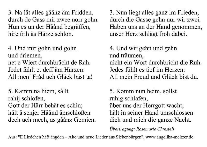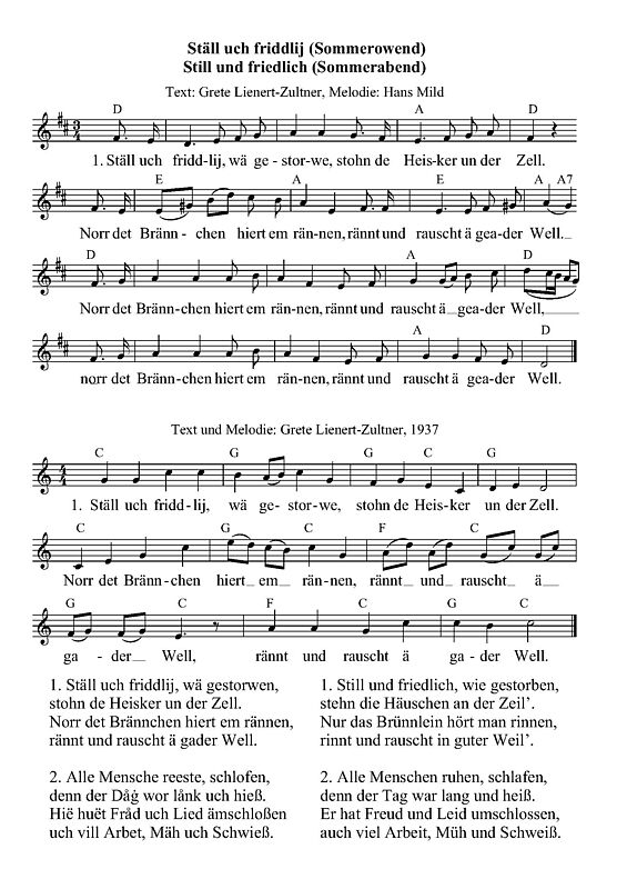 Hören Sie das Lied Ställ uch fridlich (Sommerowend) in sechs verschiedenen Interpretationen unter www.siebenbuerger.de/go/2L177