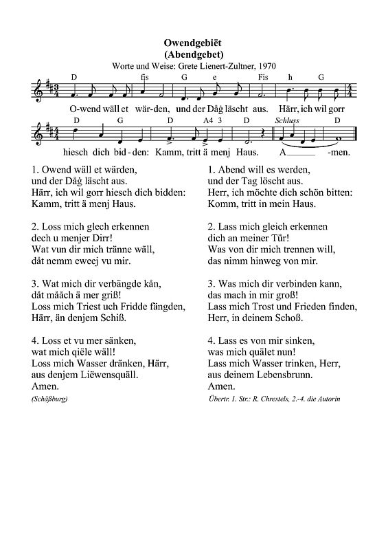 Was hat dich gereizt, „Owendgebiët“ und „Sommerglåånz uch Sannescheng“ von Grete Lienert-Zultner zu bearbeiten? Der Text mit historischer Bedeutung oder die Melodie?