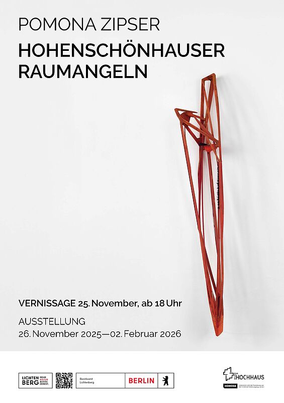 Die Künstlerin Pomona Zipser zeigt vom 26. November 2025 bis 2. Februar 2026 ihre „Hohenschönhauser Raumangeln“ im studio im HOCHHAUS, Zingster Straße 25, 13051 Berlin.