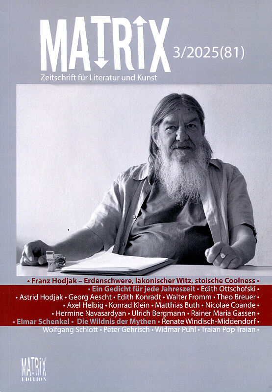 Matrix. Zeitschrift für Literatur und Kunst erscheint im Ludwigsburger Pop Verlag; die Ausgabe 3/2025 über Franz Hodjak, 202 Seiten, ISSN 1861-8006, kostet 15 Euro und kann im Buchhandel oder über E-Mail: bestellung-service[ät]pop-verlag.com bestellt werden.