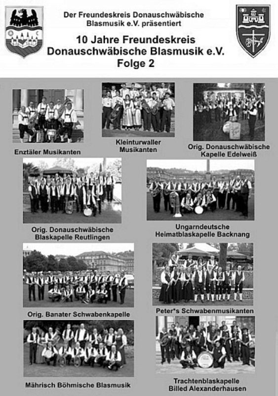 Vertreten sind u.a. Trachtenblaskapelle „Billed Alexanderhausen“, „Enztäler Musikanten“, „Peters Schwabenmusikanten“, Frank Eidenpenz und seine „Mährisch-Böhmische Blaskapelle“, „Kleinturwaller Musikanten“ aus Ungarn, „Original Banater Schwabenkapelle“, „Original Donauschwäbische Blaskapelle Edelweiß“, „Original Donau- schwäbische Blaskapelle Reutlingen“, „Ungarndeutsche Heimatblaskapelle Backnang“ und die „Siebenbürger-Banater Blaskapelle Ingolstadt“.