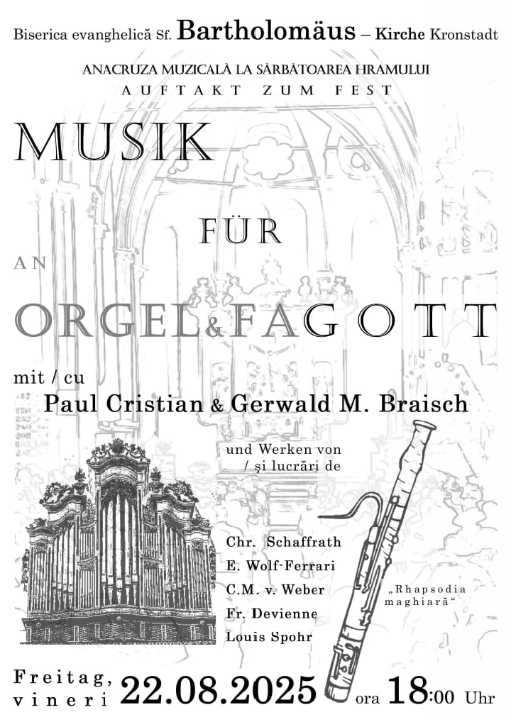 Freitag, 22. August18.00 Uhr Konzert mit Fagott und Orgel mit Paul Christian und Gerwald Maximilian Braisch