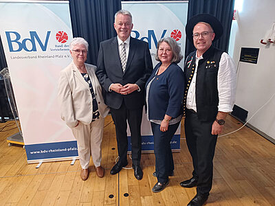 Der langjährige Ministerpräsident von Rheinland-Pfalz und Thüringen Dr. Bernhard Vogel wurde seitens des Bundes der Vertriebenen für sein Lebenswerk und seinen Einsatz für die Interessen der Heimatvertriebenen und Spätaussiedler mit der Goldenen Ehrennadel des Verbandes ausgezeichnet. mehr...