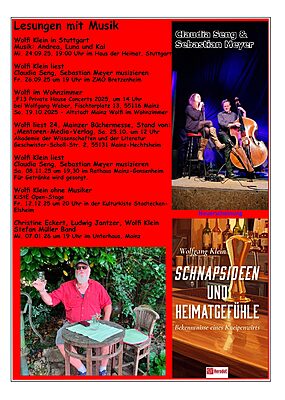 Lesungen, Vorträge und Theater mit Wolfi Klein