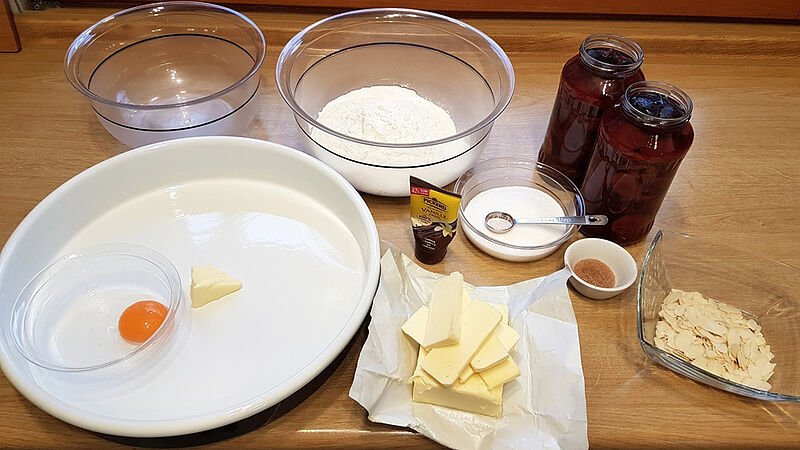 Zubereitung: Die Zwetschgen entsteinen, vierteln und mit Zitronensaft, Zimt und 2 EL Zucker vermengen. 100 ml roten Saft mit Speisestärke, Vanillezucker und 30 g Zucker glattrühren. 400 ml roten Saft in einen Topf geben und aufkochen lassen. Die Stärkemischung dazugeben und die Masse unter ständigem Rühren nochmal aufkochen lassen. Die geviertelten Zwetschgen unterrühren und etwas abkühlen lassen. Alternativ kann man Zwetschgenkompott aus dem Glas (2 große Gläser) verwenden.