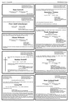 [..] m Gedächtnis ihrer Lieben leben, die sind nicht tot, sie sind nur fern. Schweren Herzens nahmen wir Abschied von unseren Eltern, Schwiegereltern, Großeltern und Urgroßeltern Johann Frank Anna Frank geboren am . . in Schönberg geboren am . . in Malmkrog gestorben am . . in Nürnberg gestorben am . . in Nürnberg In stillem Gedenken: Annemarie mit Karl Hans mit Elfriede Rose mit Peter und alle Enkel und Urenkel Was man tief in seinem Herzen besitzt, [..]